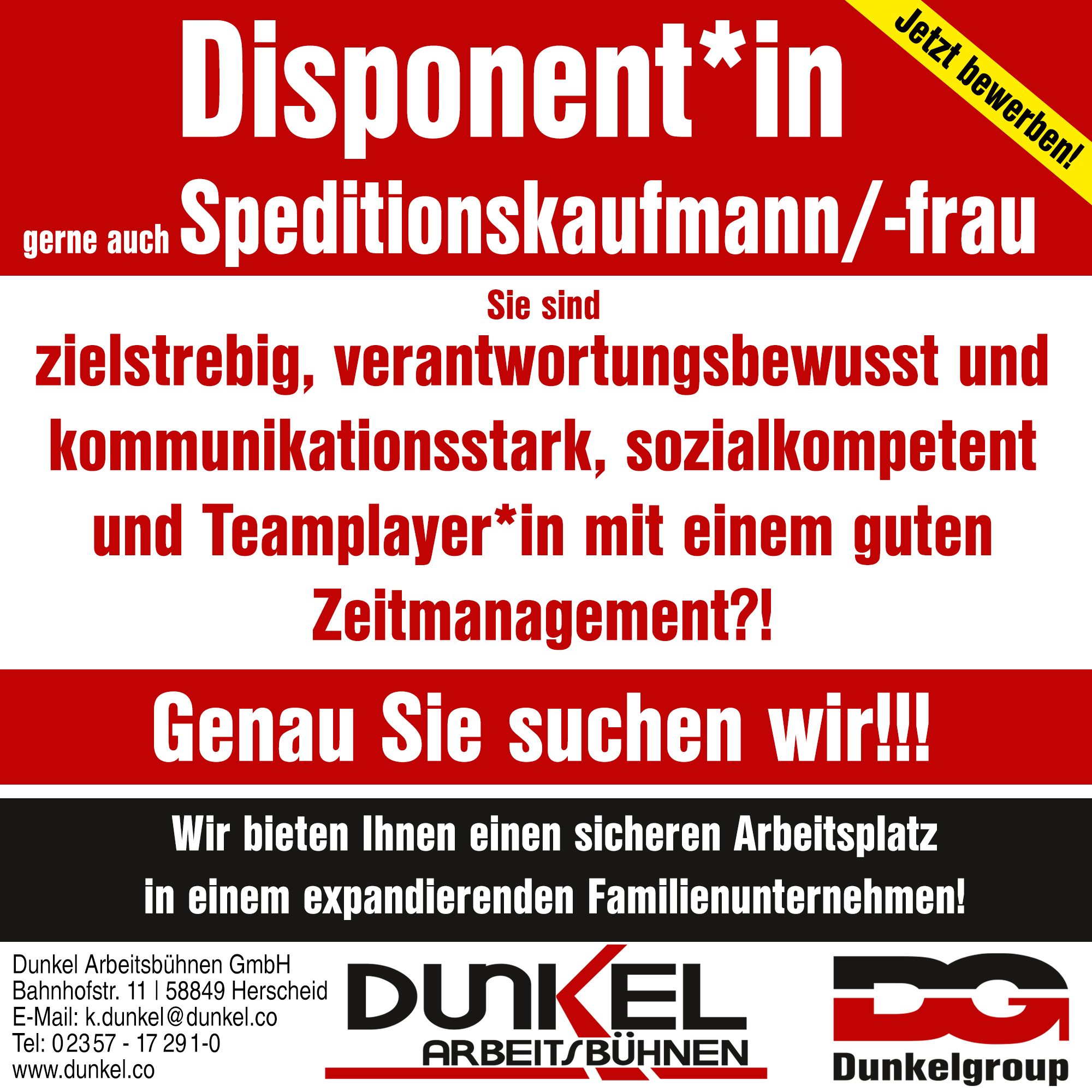 Wenn Sie Interesse an dieser abwechslungsreichen Tätigkeit in einem dynamischen Unternehmen haben, dann freuen wir uns über Ihre Be-
